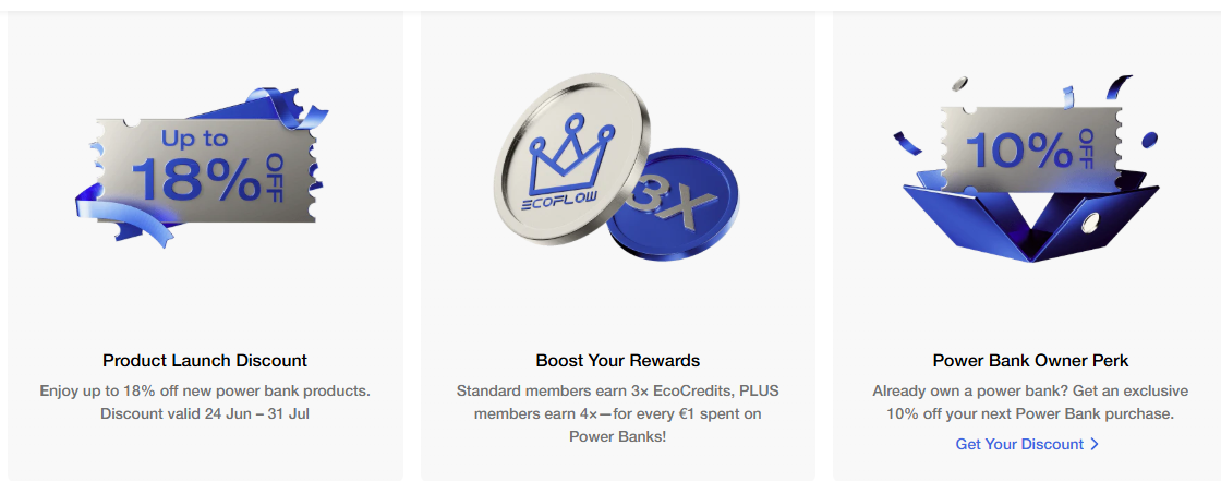 1. 24 ივნისიდან, დილის 9 საათიდან (ცენტრალური ევროპის დროით) 2025 წლის 1 აგვისტომდე, დილის 9 საათიდან (ცენტრალური ევროპის დროით) შერჩეული EcoFlow Power Bank-ის პროდუქტები ხელმისაწვდომი იქნება 18%-მდე ფასდაკლებით, გაშვების კამპანიის ფარგლებში.