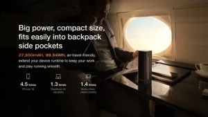 • კომპაქტური ზომა, უზარმაზარი სიმძლავრე: 27,650 mAh (99.54 Wh) მოსახერხებელია თვითმფრინავით მგზავრობისთვის.¹