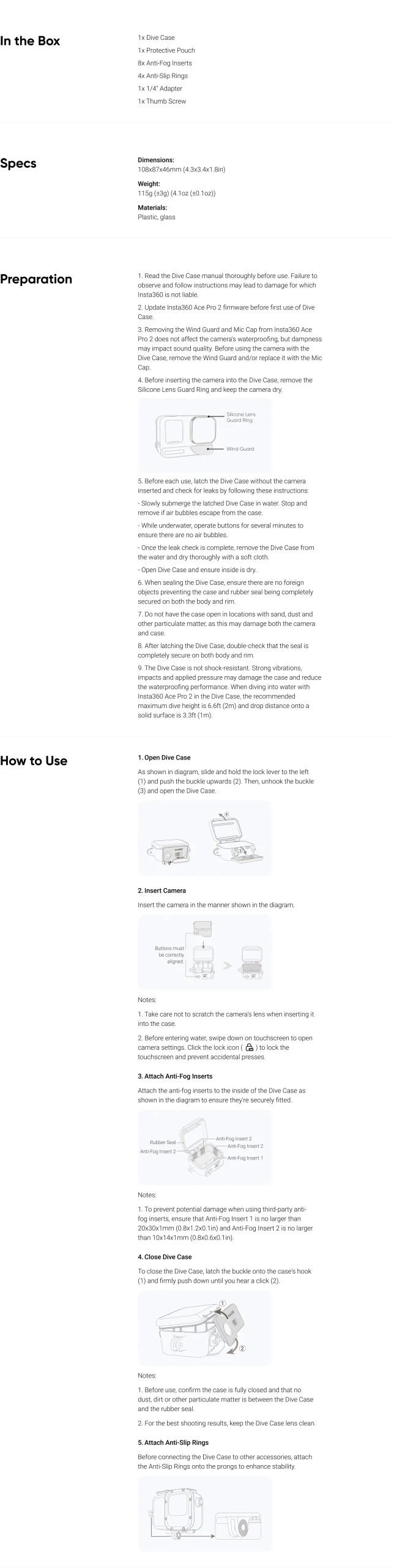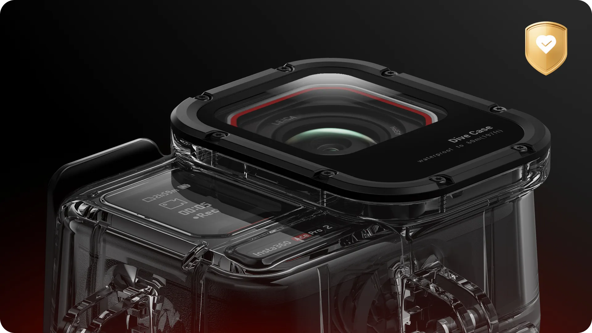 მტკიცე დიზაინი და ტესტირება უზრუნველყოფს, რომ დაივინგის ქეისი იდეალურად ერგება Insta360 Ace Pro 2-ს.