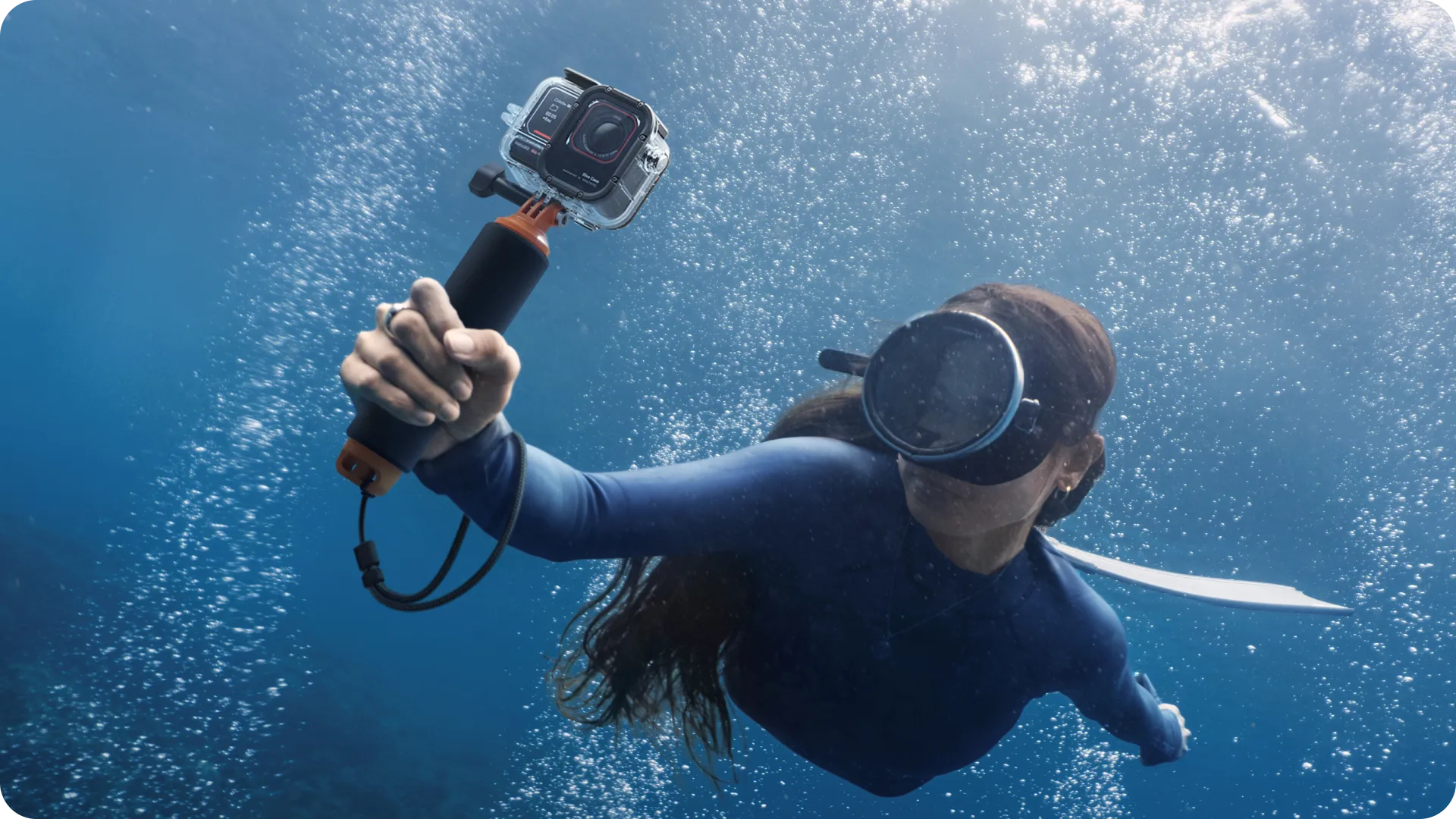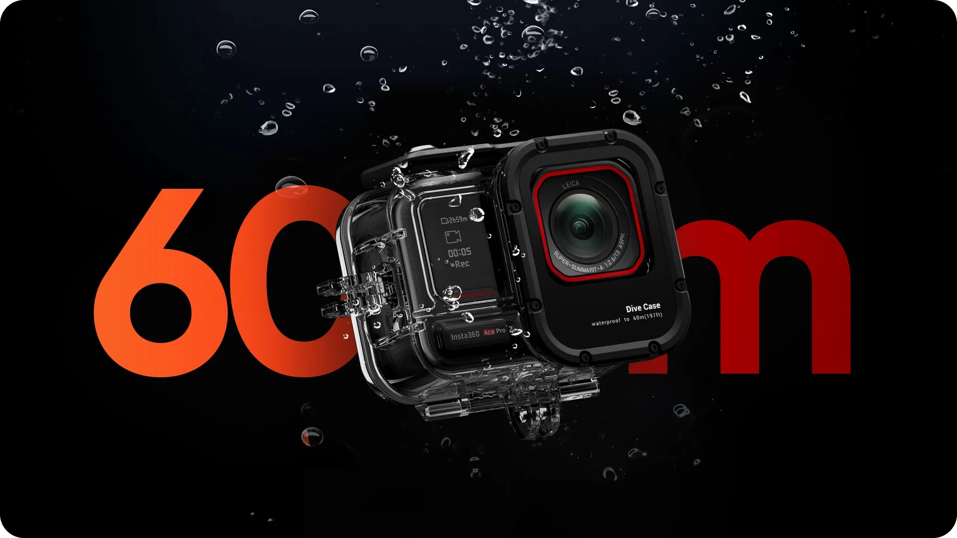 - Insta360 Ace Pro 2-ს წყალგაუმტარობას 60 მეტრამდე (197 ft-მდე) სიღრმეზე უნარჩუნებს.
