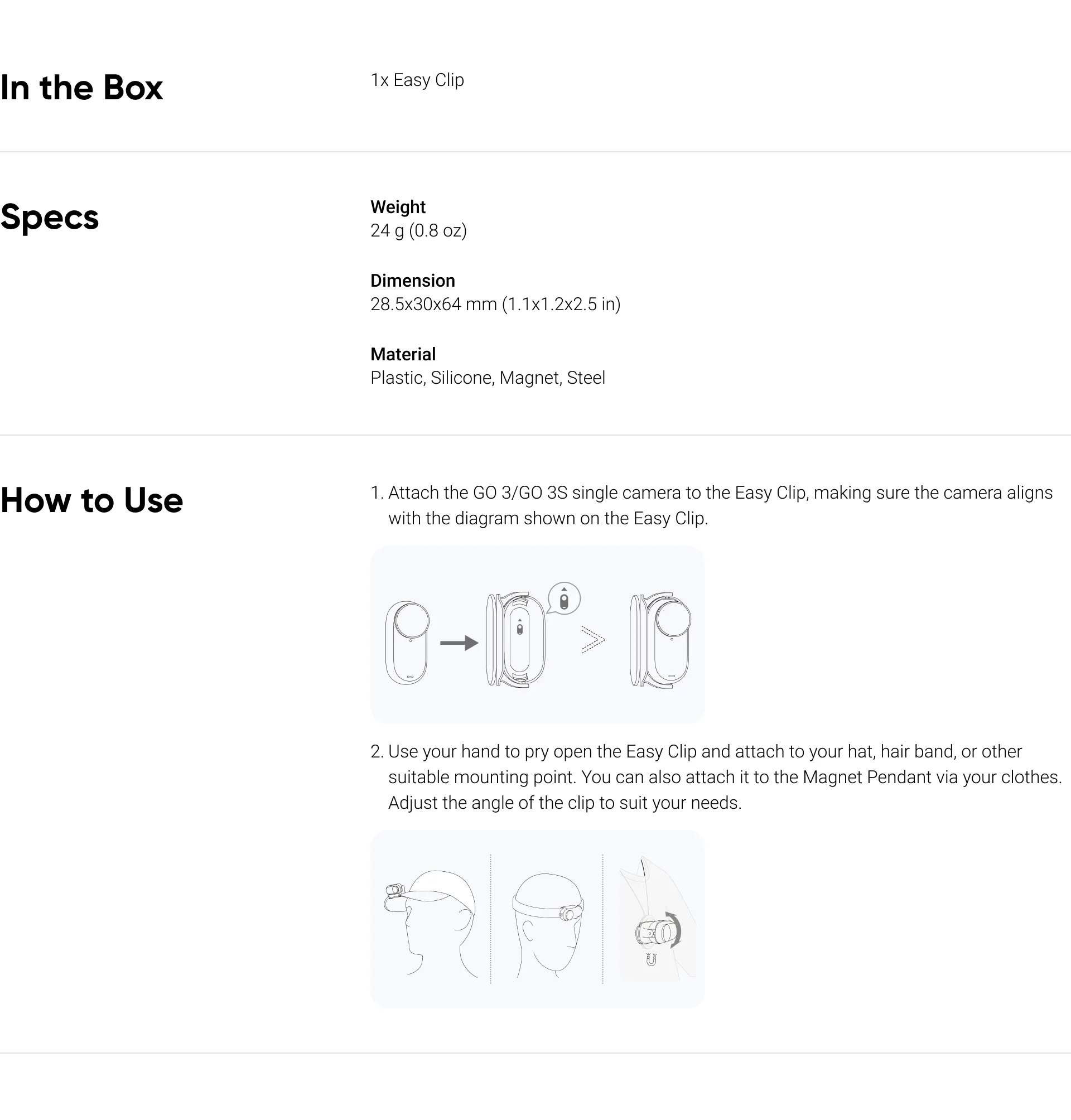 მოათავსეთ Easy Clip ქუდის კიდეზე, რათა გადაიღოთ პირველი პირის მიერ გადაღებული ჩაღრმავება.