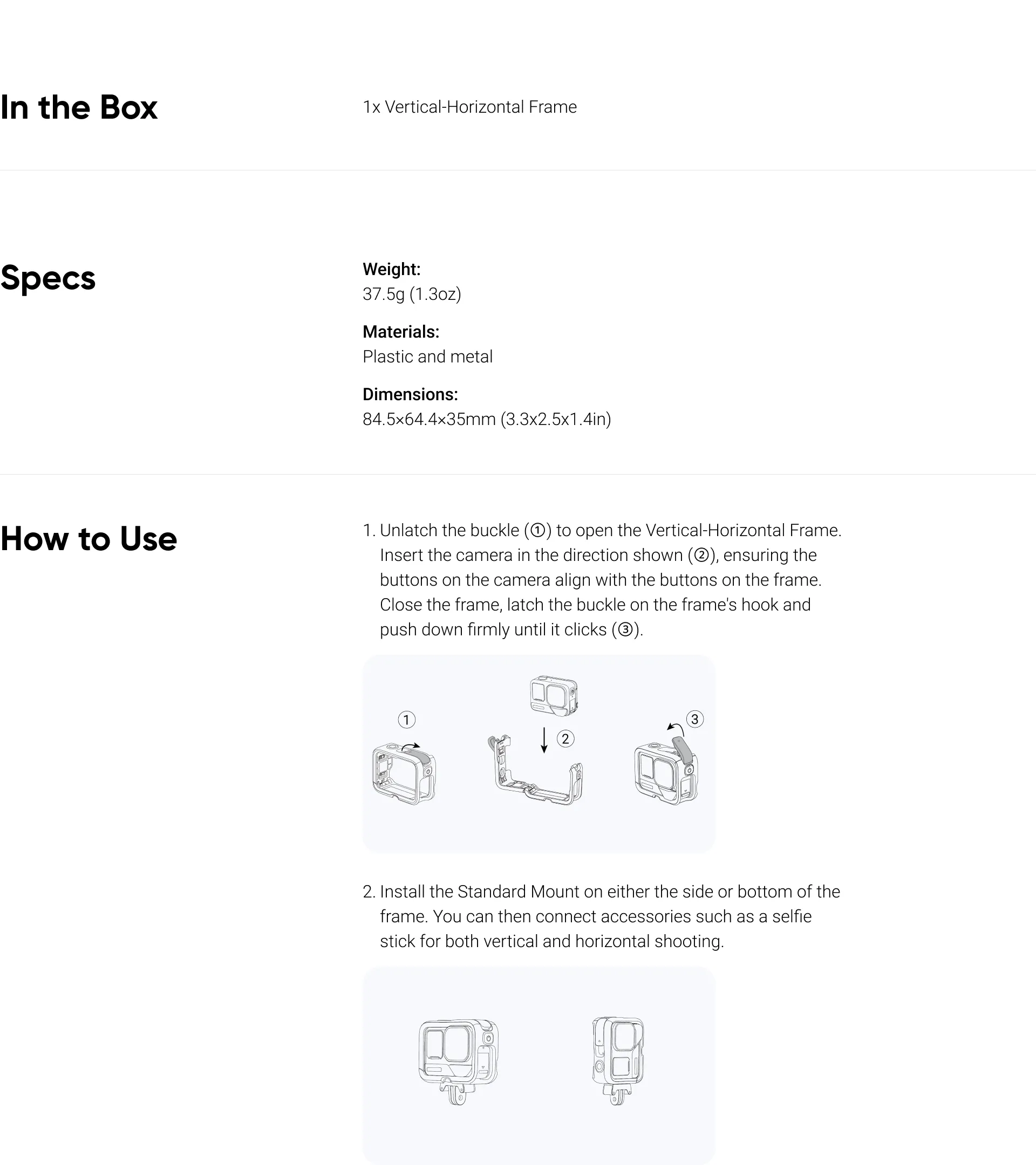 განაახლეთ თქვენი კამერა მსუბუქი დამცავი ჩარჩოთი და ჰორიზონტალურიდან ვერტიკალურზე მარტივი გადართვით.