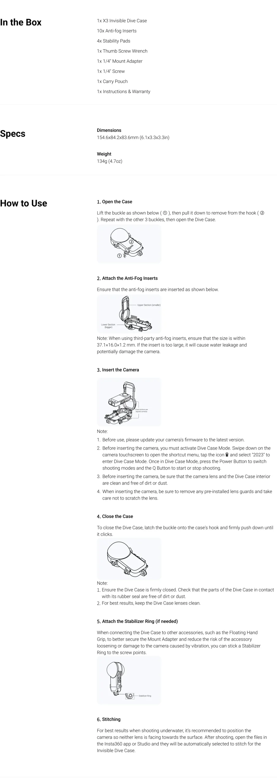 - სრულიად უხილავი ქეისი, 360 გრადუსიანი კადრების გადასაღებად არანაირი დაბრკოლება არ გააჩნია.