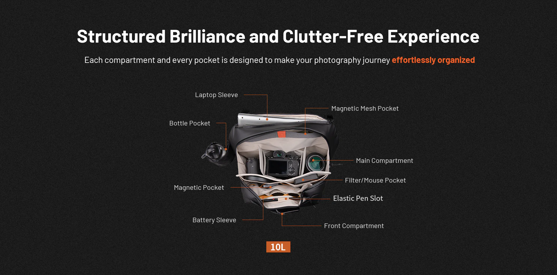 3. დეტალური განყოფილებები და უხვი შიდა ჯიბეები უზრუნველყოფს მოწესრიგებულ შენახვას.