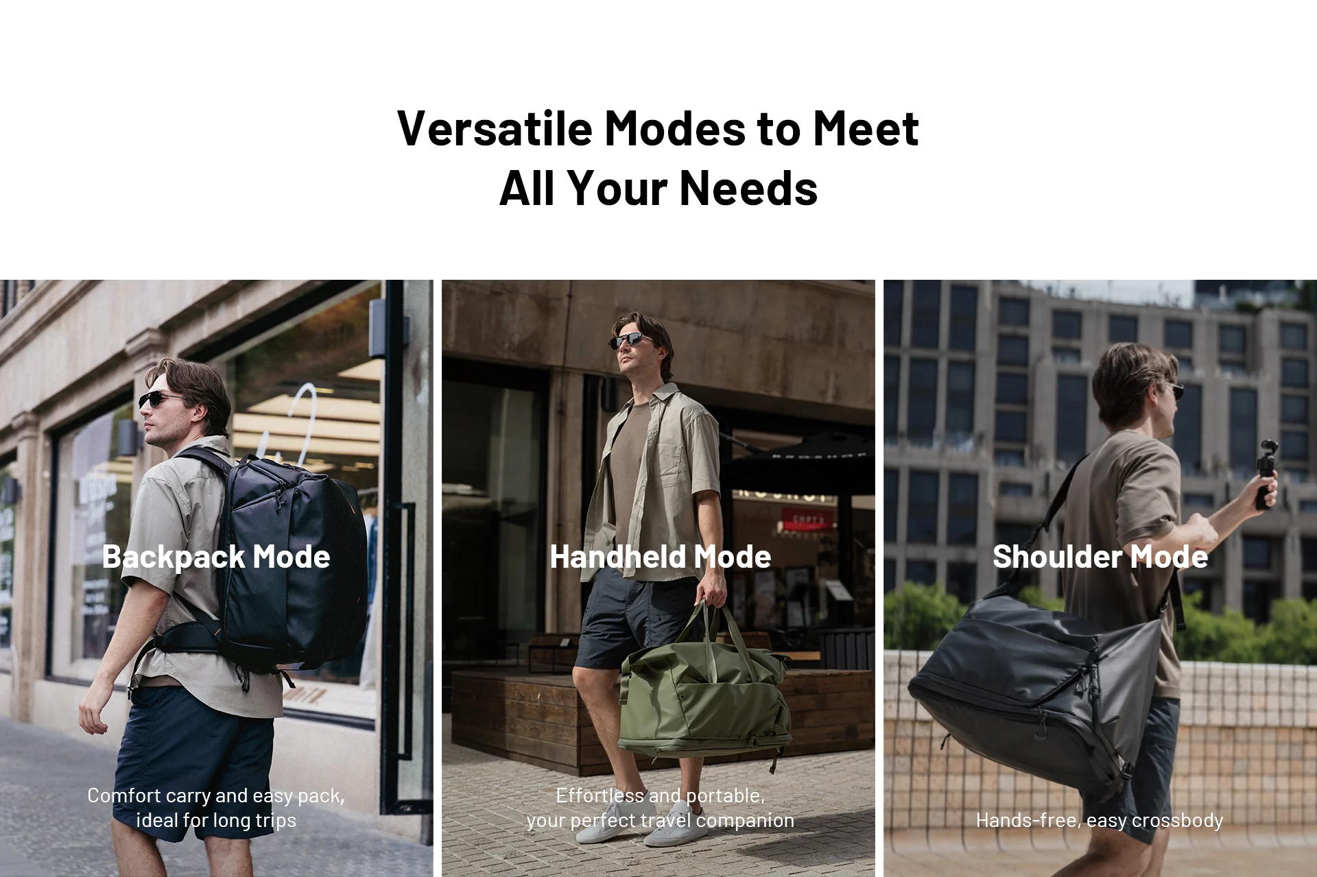 1. მრავალმხრივი ტარება: ნებისმიერი სიტუაციისთვის შეგიძლიათ გადართოთ ზურგჩანთის, მხარზე და ხელის რეჟიმებს შორის.